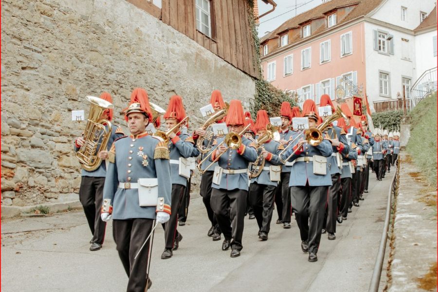 Neben unseren wöchentlichen Musikproben spielen wir zu vielen Anlässen in und außerhalb unseres Dorfs am westlichen Bodenseeufer.