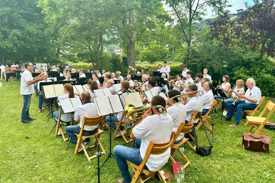 Der Rathausplatz wird zur Konzertbühne. Auf dem historischen Platz im Dorfzentrum spielen wir im Sommer an ausgewählten Terminen einen bunten Mix unserer Blasmusik. Von modernen Hits bis zünftige Märsche haben wir in unseren Notenmappen alles dabei. Wir freuen uns, Gästen und Einheimischen, einen unterhaltsamen Abend zu bieten.
